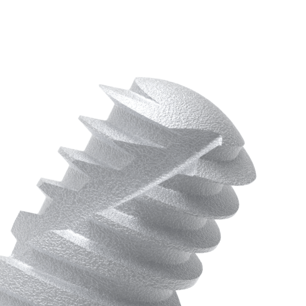 The combination of conical body, dual threads, two spiral channels, deep and especially sharp threads ensure superior primary stability, offering the ultimate choice for implantation in wide range of bone types and immediate loading protocol.